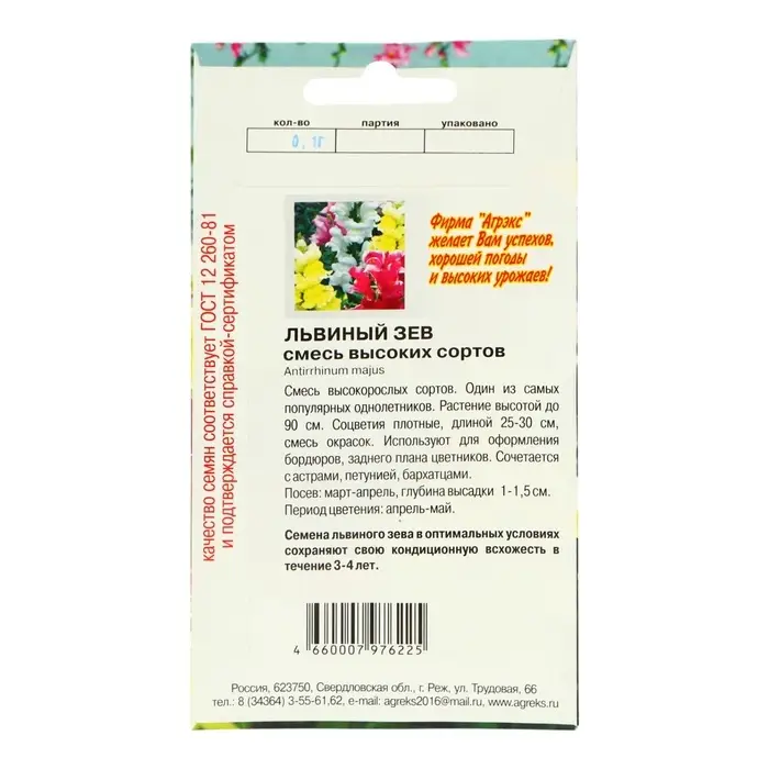 Семена цветов Львиный зев смесь высоких сортов, О, 0,1 г