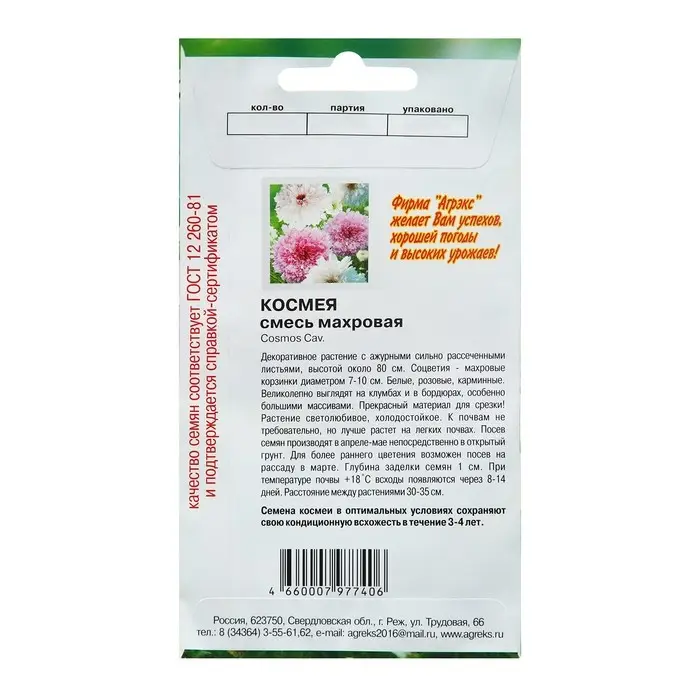 Семена цветов Космея махровая, О, 0,2 г