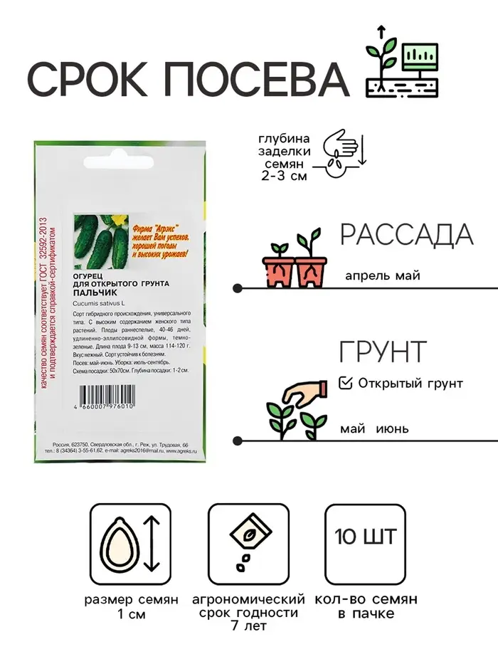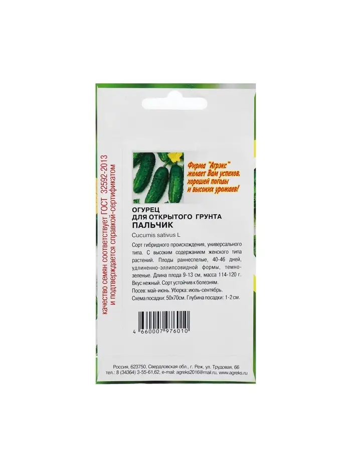 Семена Огурец "Пальчик", скороспелый, партенокарпический, 10 шт