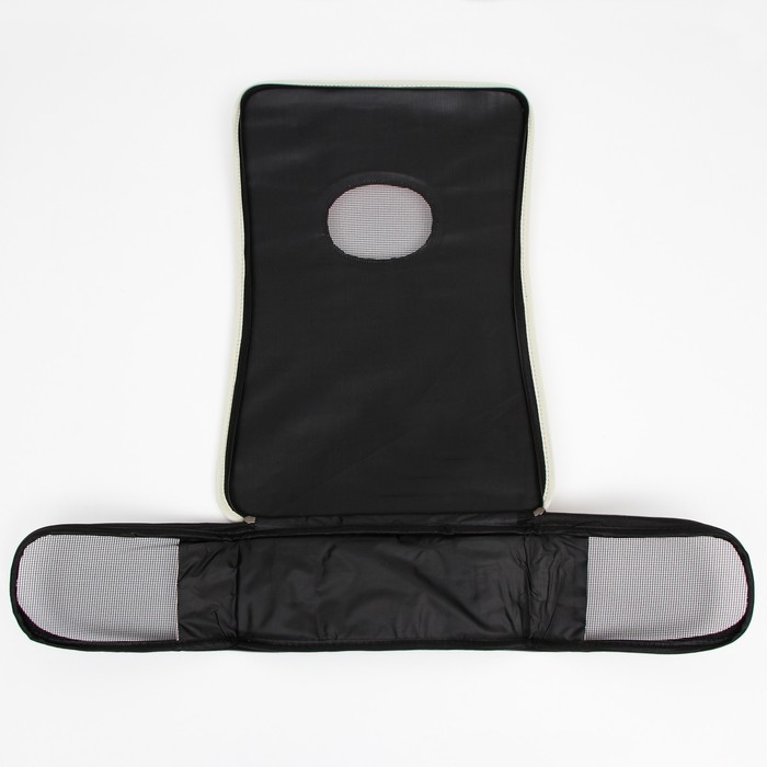 В дно переноски вшит плотный картон, чтобы усилить ее жесткость и обеспечить дополнительную поддержку для животного.