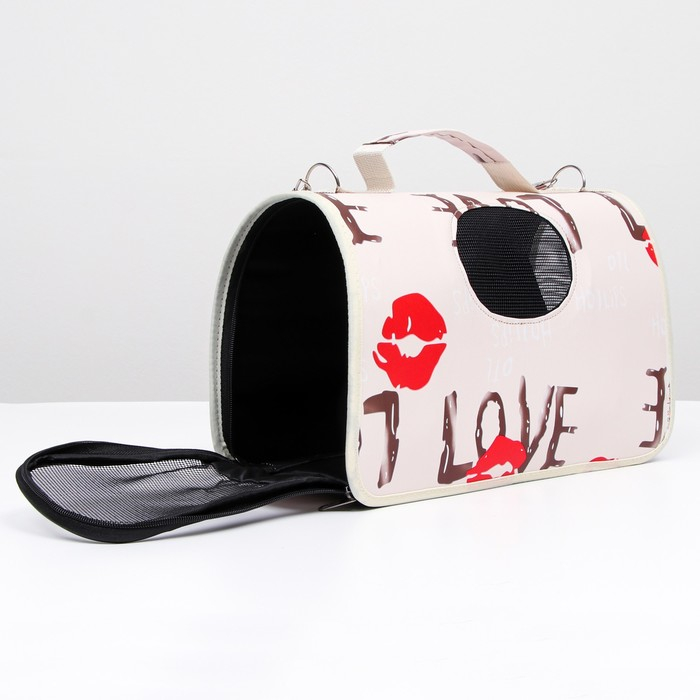 Сумка - переноска для животных "Love", размер S, белая, 37,5 х 17 х 22 см