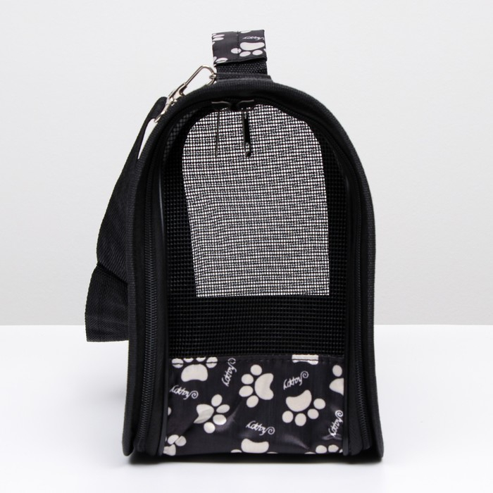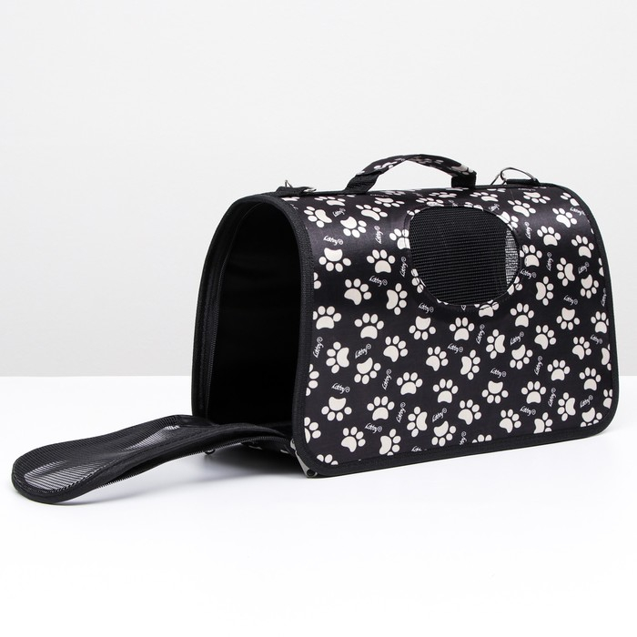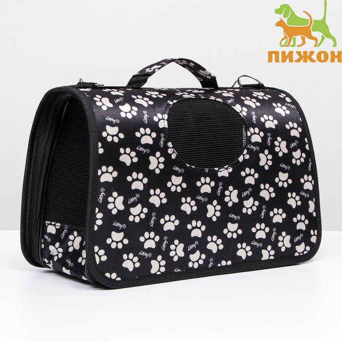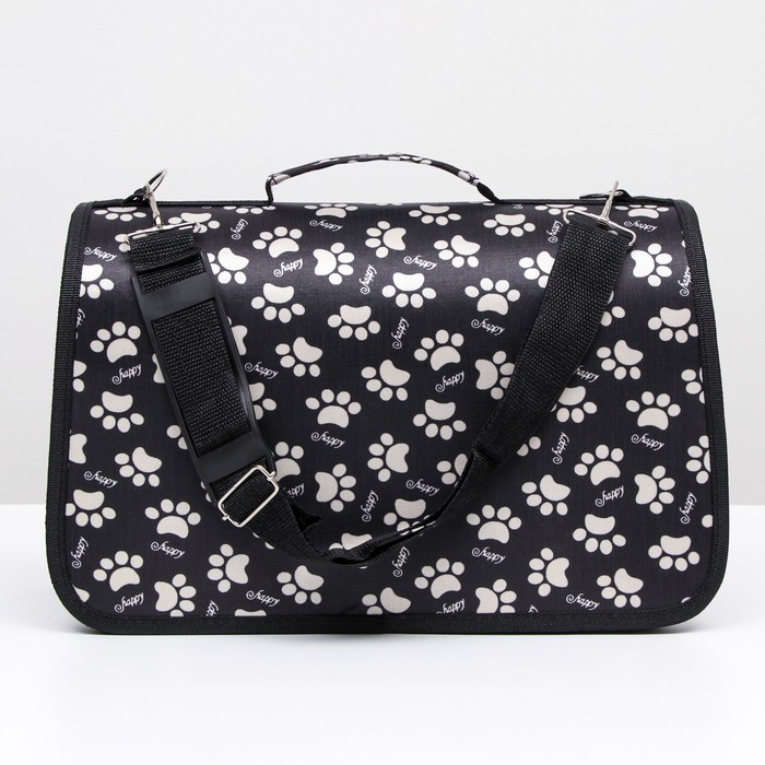 Сумка - переноска для животных "Лапки Happy", чёрная, размер М, 40 х 21 х 27 см