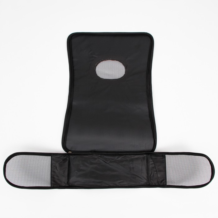 В дно переноски вшит плотный картон, который обеспечивает твердую основу и защищает животное от вибраций и ударов. Прозрачная сетка позволяет питомцу наблюдать за окружающим миром и получать достаточно свежего воздуха.