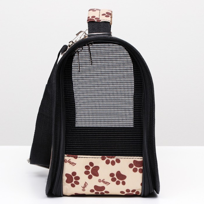 Сумка - переноска для животных "Лапки Happy", чёрная, размер М, 40 х 21 х 27 см