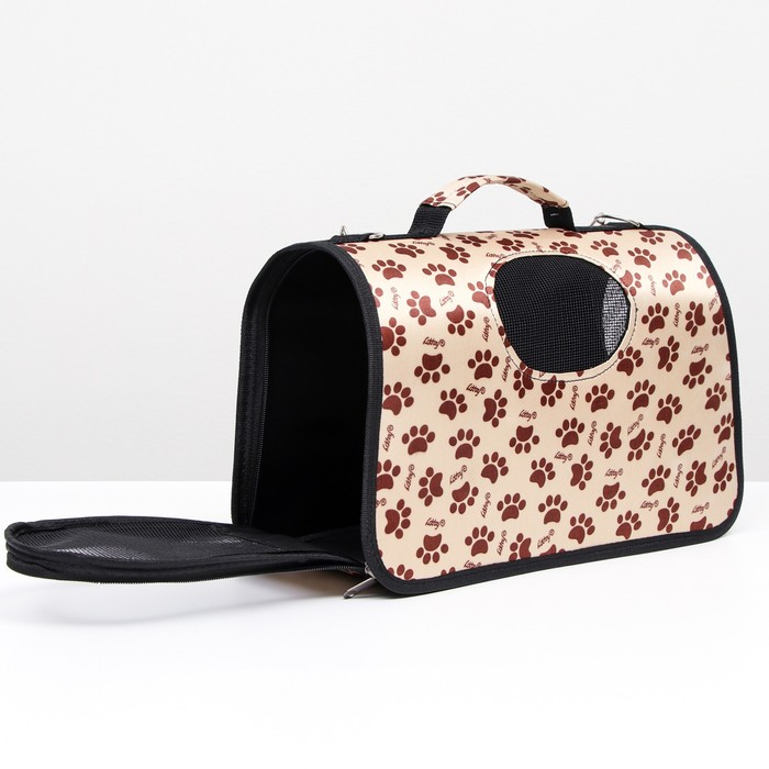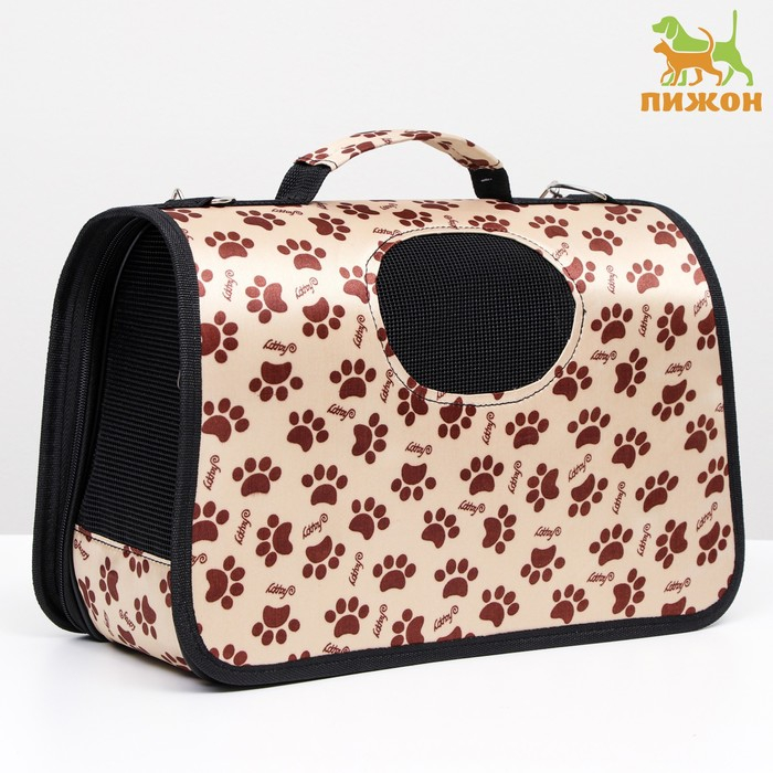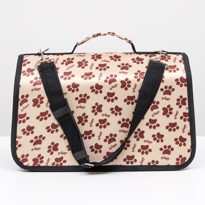 Сумка - переноска для животных "Лапки Happy", бежевая, размер S, 37,5 х 17 х 22 см