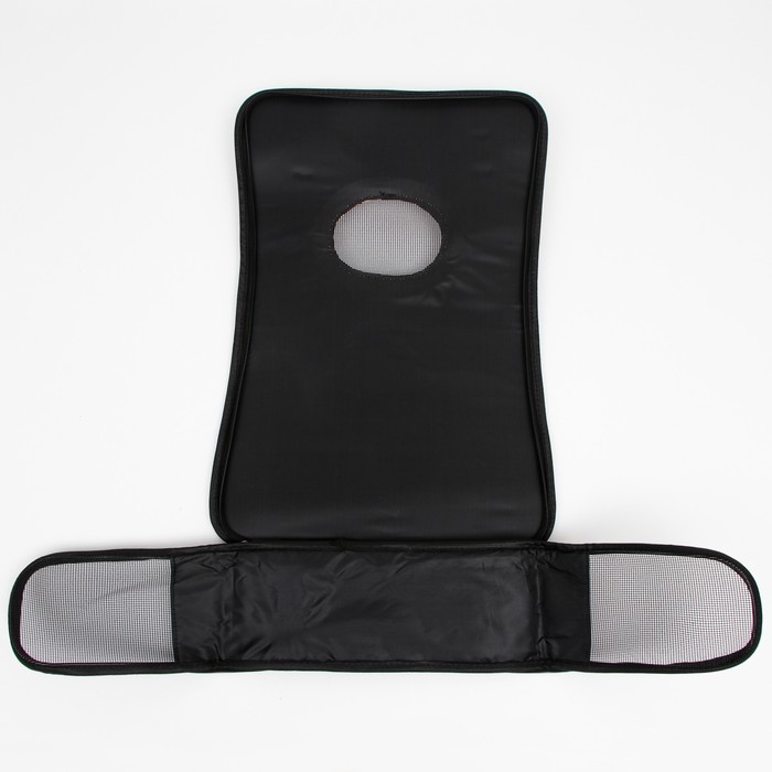 В дно переноски вшит плотный картон, который обеспечивает твердую основу и защищает животное от вибраций и ударов. Прозрачная сетка позволяет питомцу наблюдать за окружающим миром и получать достаточно свежего воздуха.