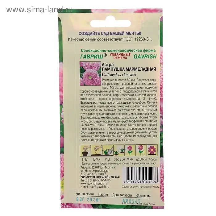 Семена цветов Астра Пампушка мармеладная, помпонная, розовая, О, ц/п, 0,3 г