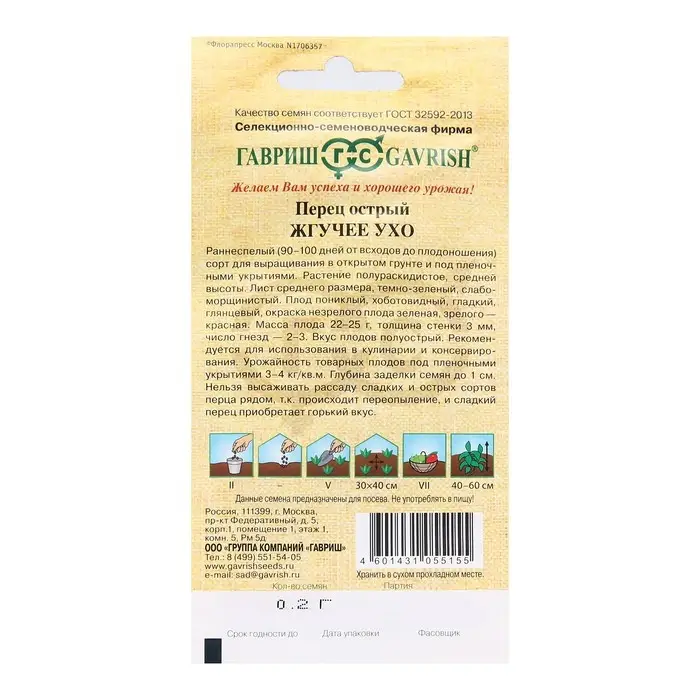 Семена Перец острый "Жгучее ухо", 0,1 г