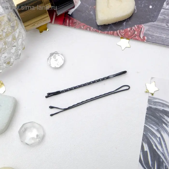 Невидимки и заколки для волос QF «Классика», 4 заколки, 12±2 шт. невидимок 6 см, чёрные