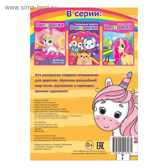 Раскраска для девочек «Пони-малыши», А5, 12 стр.