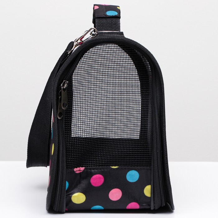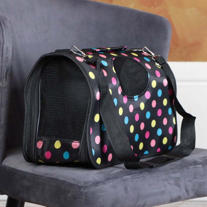 Сумка - переноска для животных "Горошек", чёрная, размер S, 37,5 х 17 х 22 см