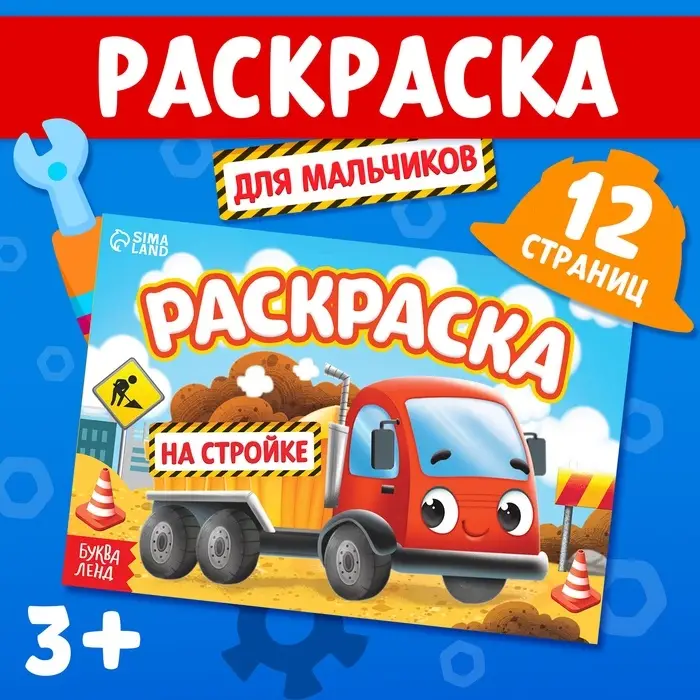 Раскраска для мальчиков «На стройке», А5, 12 стр.