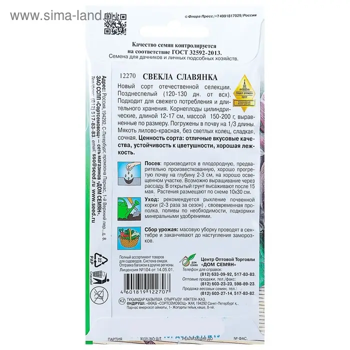 Семена Свекла "Русский Борщ" F1, столовая, цп, 1 г.