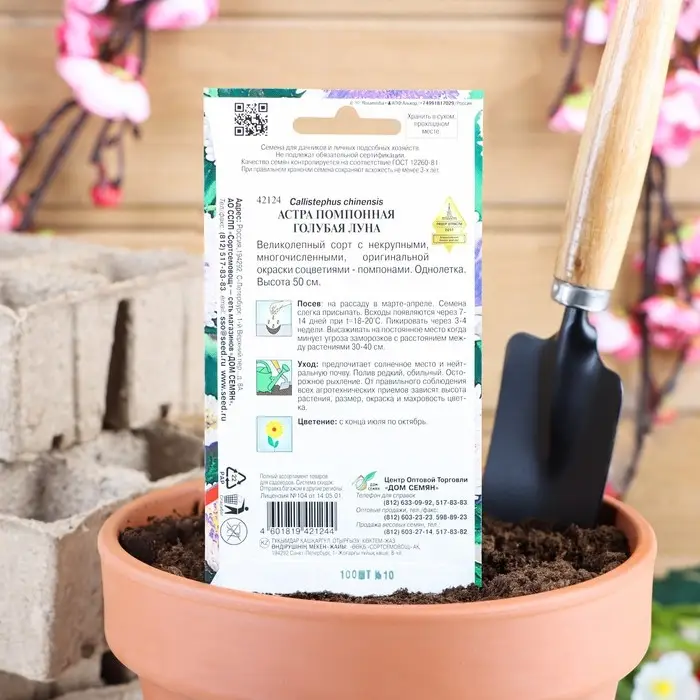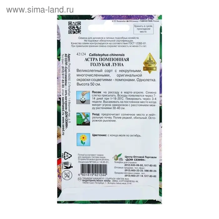 Семена цветов Астра помпонная "Голубая Луна" Дом семян, О, 100 шт
