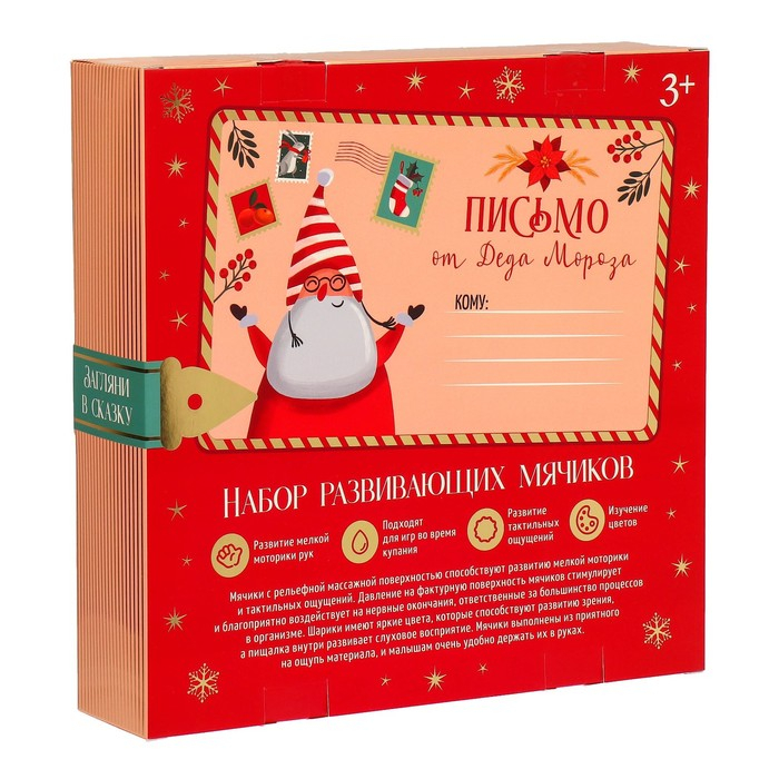 Подарочный набор развивающих, тактильных мячиков «Адвент-календарь», 9 шт., новогодняя подарочная упаковка, Крошка Я
