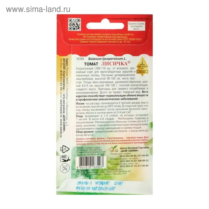 Семена Томат "Лисичка" Дом семян, скороспелый, детерминантный, среднерослый, 25 шт