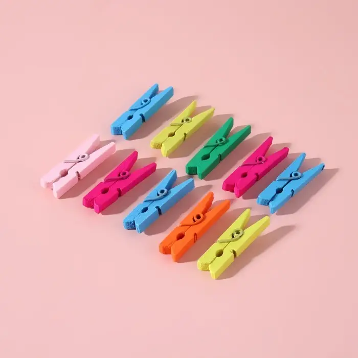 В наборе 10 разноцветных прищепок.