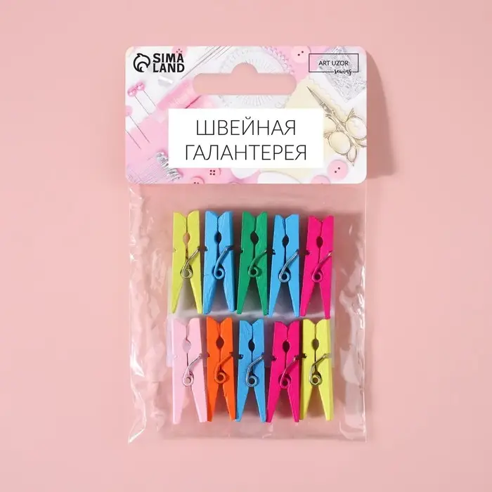 Прищепки для шитья, 3×0.5×0.3 см, 10 шт., разноцветные
