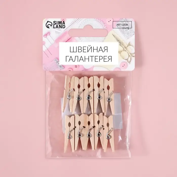Небольшие деревянные прищепки пригодятся, когда вам нужно будет зафиксировать ткань во время шитья. Они надёжно закрепят материал и не позволят ему смещаться во время работы. Станут отличной заменой булавкам: не зацепят и не порвут ткань. Также прищепки можно использовать в качестве декора или аксессуаров.