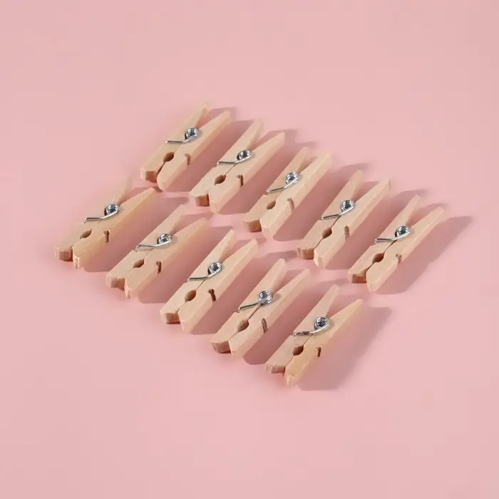 В наборе 10 прищепок бежевого цвета.