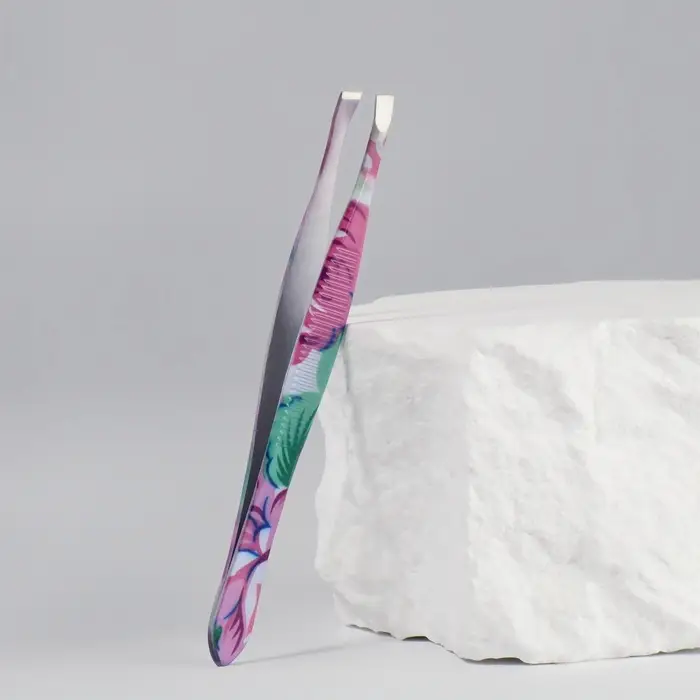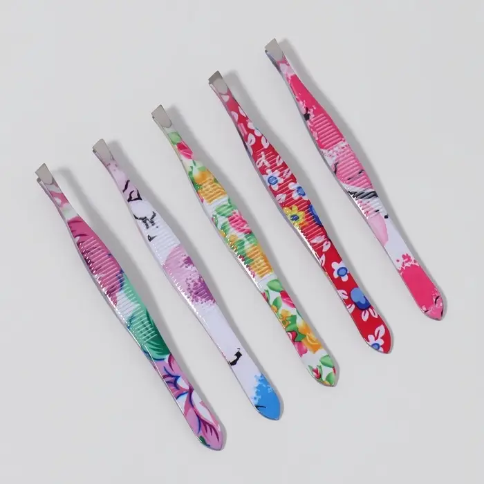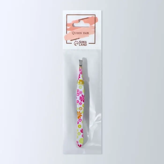 Пинцет скошенный, узкий, 8.5 см, рисунок МИКС