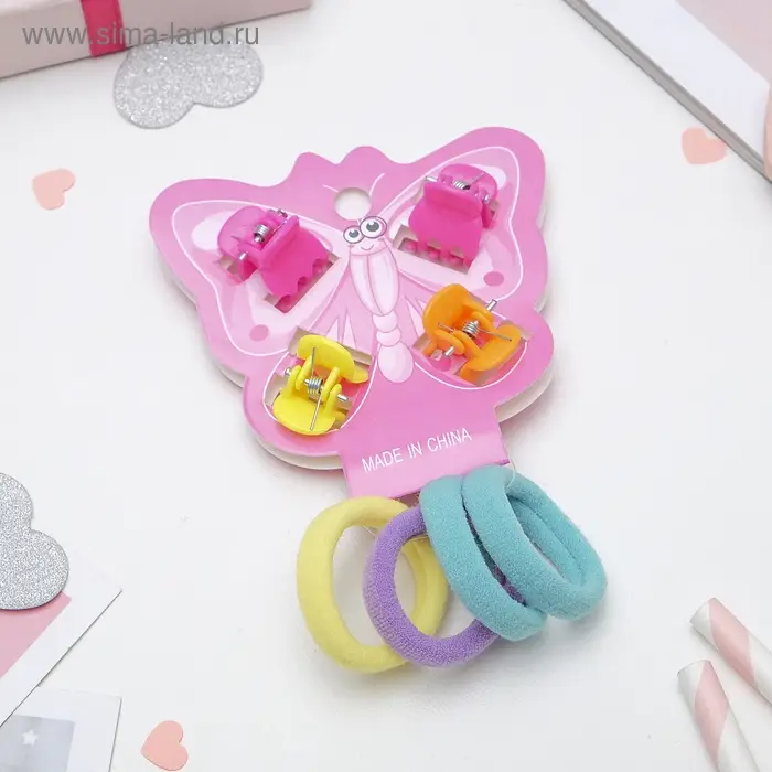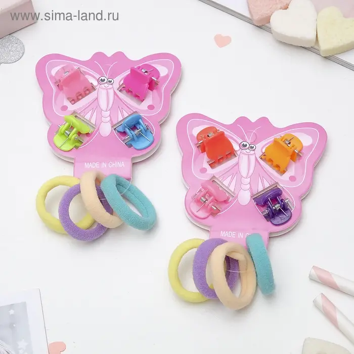 Набор для волос "Бабочка" (4 краба, 4 резинки) нежные оттенки