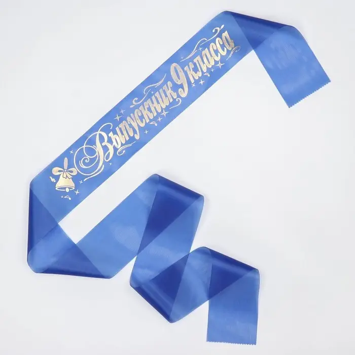 Лента на выпускной «Выпускник 9 класс», шёлк синий фольга