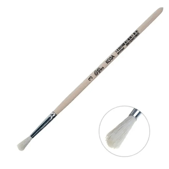 Кисть для рисования, Коза круглая №3 (диаметр обоймы 3 мм; длина волоса 16 мм), деревянная ручка Calligrata