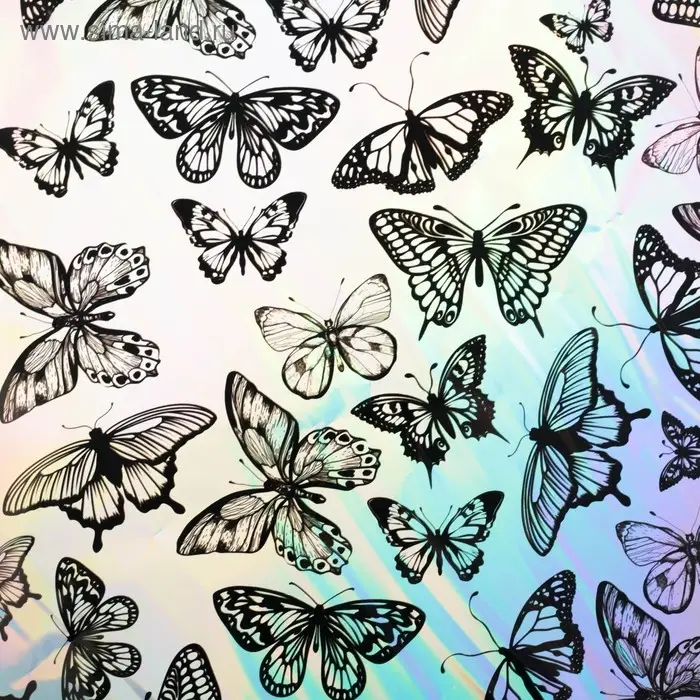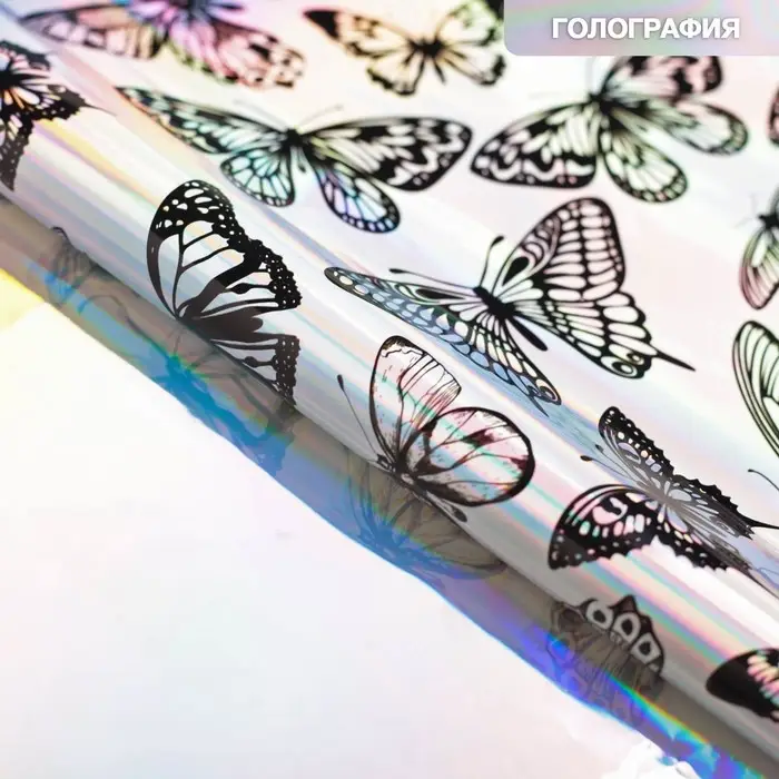 Плёнка упаковочная с голографией «Бабочки», 100 х 70 см