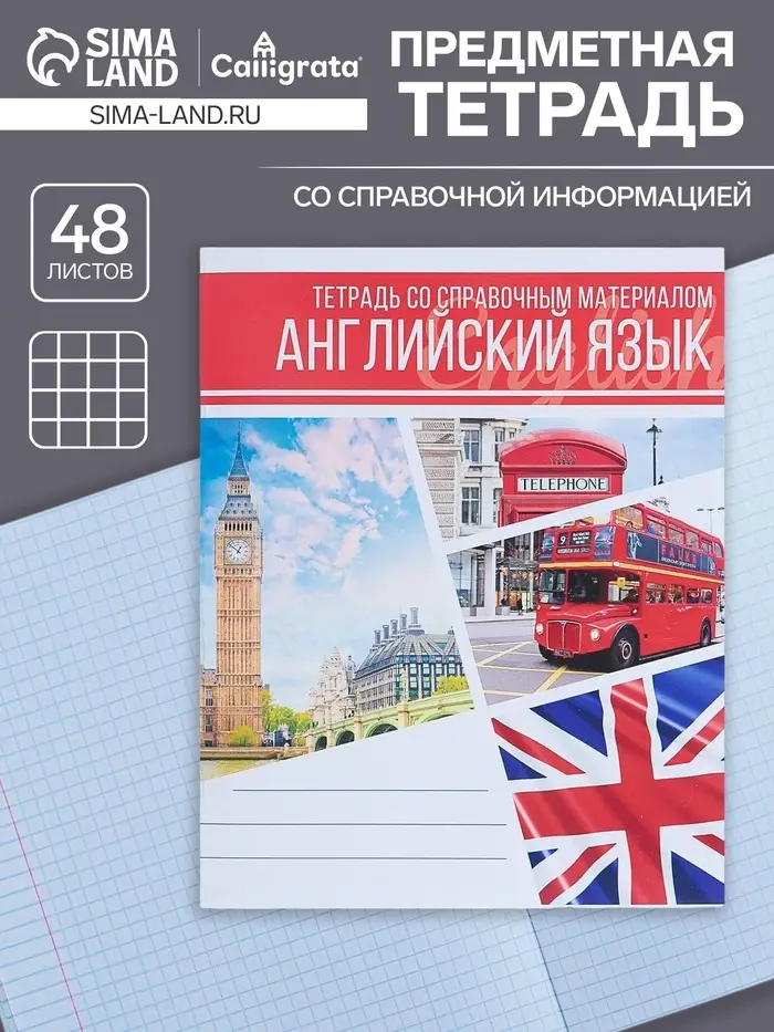 Тетрадь предметная 48 листов в клетку Calligrata, «Коллаж. Английский язык», обложка мелованный картон