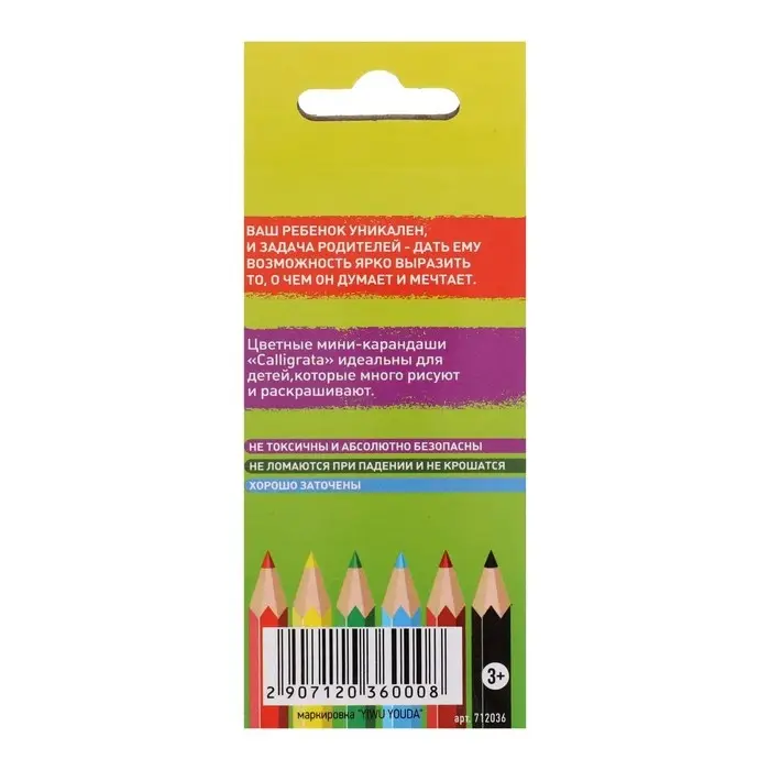 Карандаши цветные 6 цветов МИНИ, в картонной коробке
