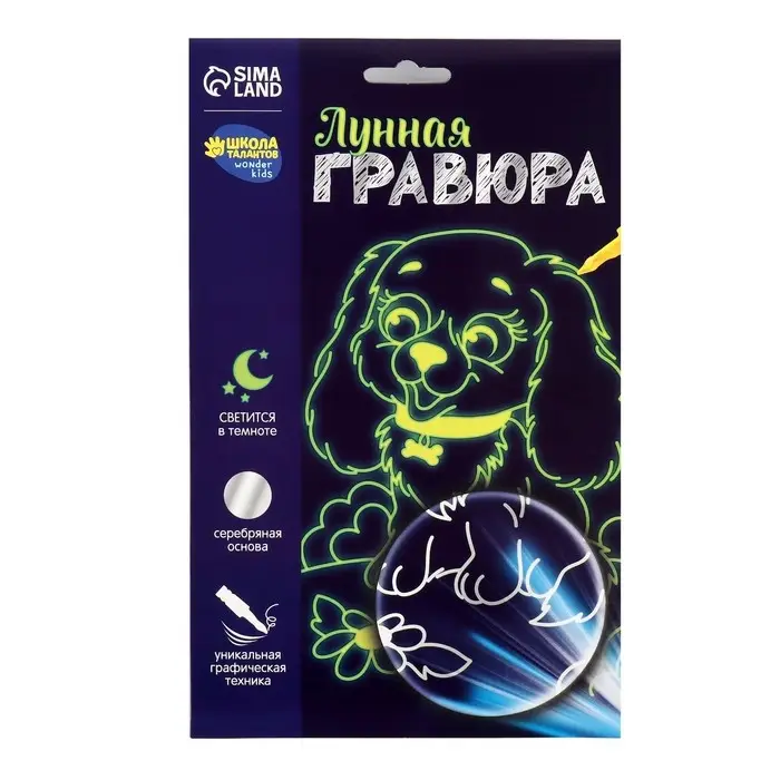 Лунная гравюра «Весёлая собачка» 14.8х21 см