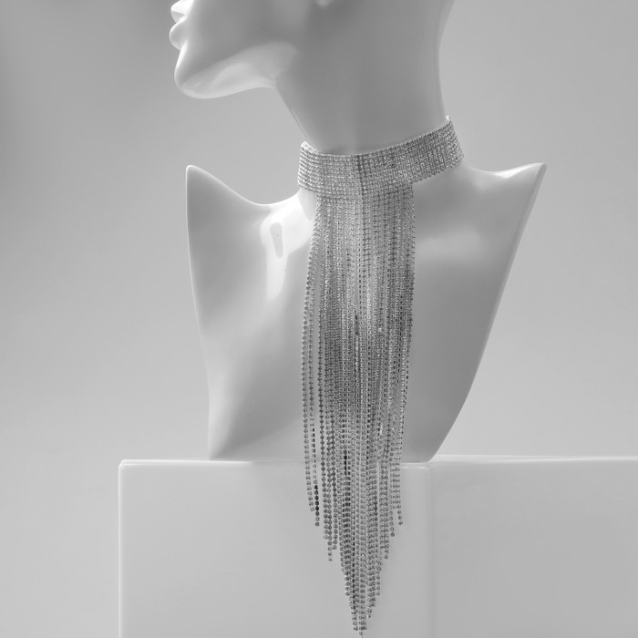 Чокер «Лёд» нити вниз, цвет белый в серебре, 26,5 см