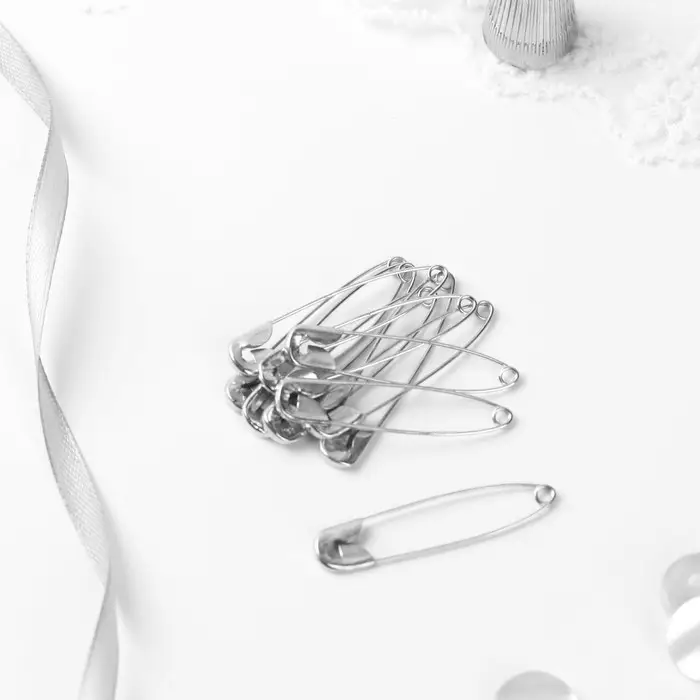 Английская булавка — универсальный помощник в быту, при шитье и рукоделии. Она пригодится для закалывания материала, драпировки ткани, создания украшений. С ней вы можете прикрепить к одежде или домашнему текстилю мягкие аксессуары. Острый край булавки прячется в безопасную петельку, она не уколет и прослужит вам долго.