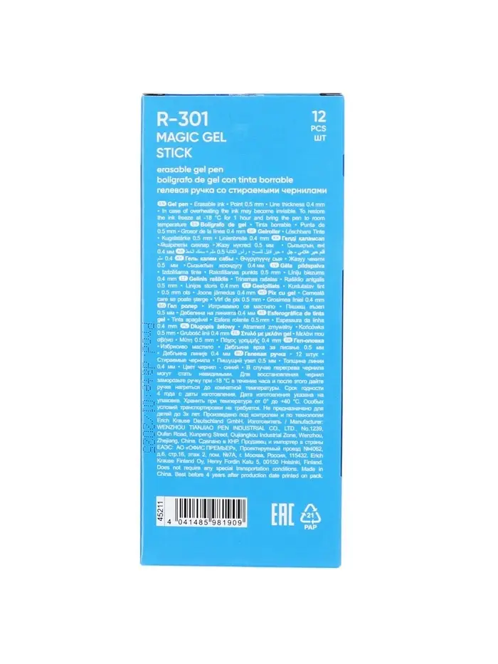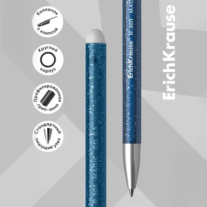Ручка гелевая стираемая ErichKrause R-301 Magic Gel, узел 0.5 мм, чернила синие, длина линии письма 200 метров (цена за 1 шт.)