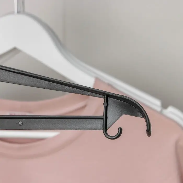 Вешалка – это компактное приспособление, которое позволит вам разместить в гардеробе классические штаны из лёгких или плотных материалов, блузки, рубашки, кофты и другие вещи. Изделие практичной формы занимает мало места, что позволяет экономить пространство в шкафу. Эргономичная форма поможет надёжно зафиксировать одежду и предотвратить её падение.