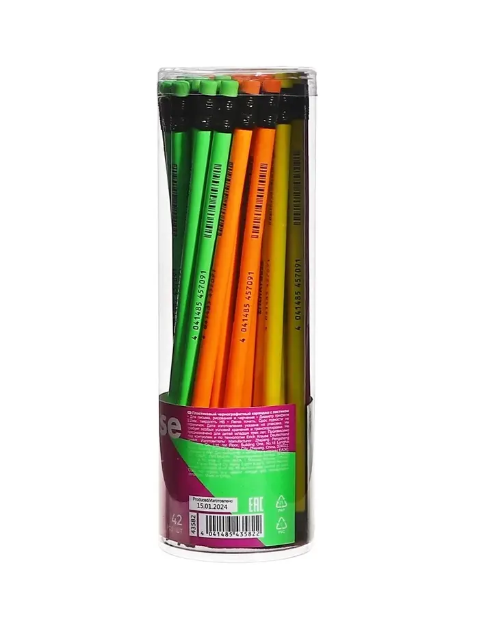- Ластик карандаша средней жесткости изготовлен из экологически чистого и гипоаллергенного материала термопластичной резины (TPR).