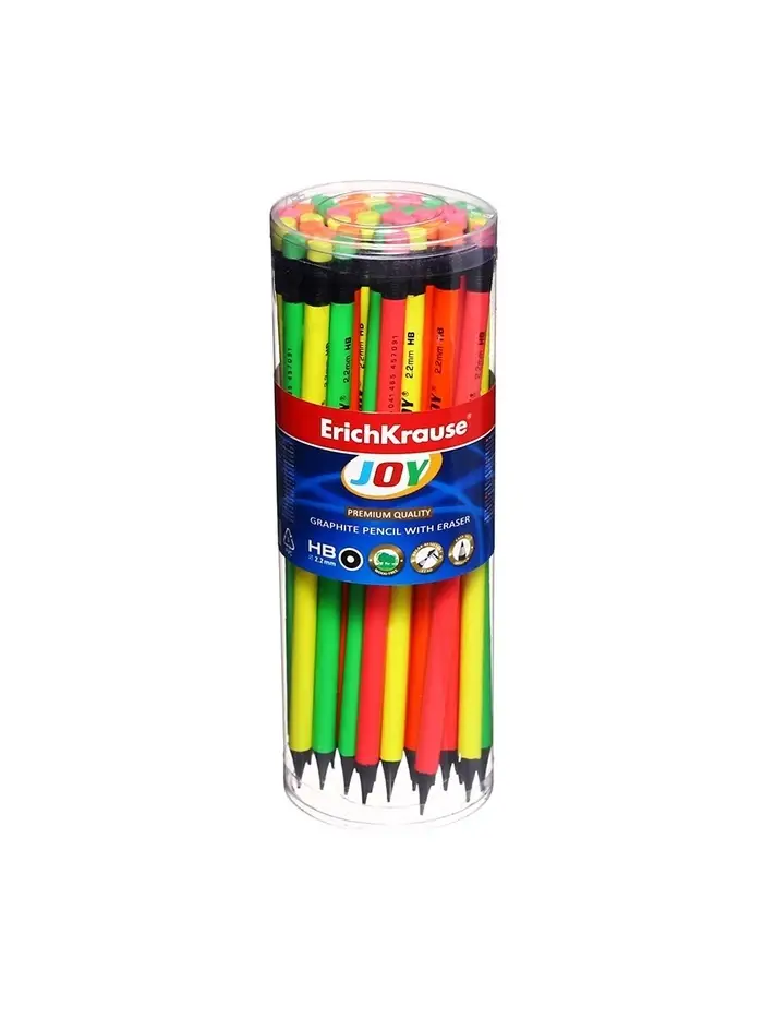 Карандаш чернографитный ErichKrause «JOY», HB, грифель d=2.2 мм, пластик, круглый, в тубусе, неон МИКС
