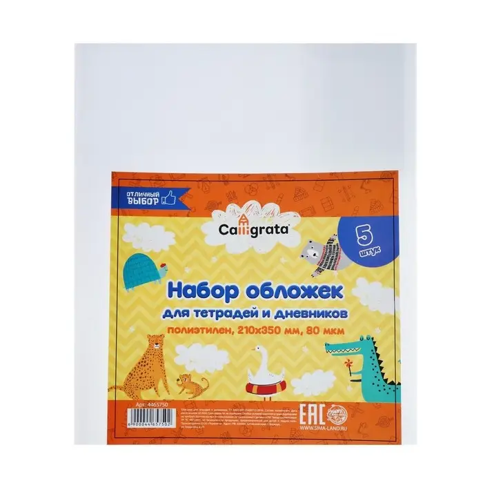 Набор обложек ПЭ 5 штук, 210 х 350 мм, 80 мкм, для тетрадей и дневников (в мягкой обложке)