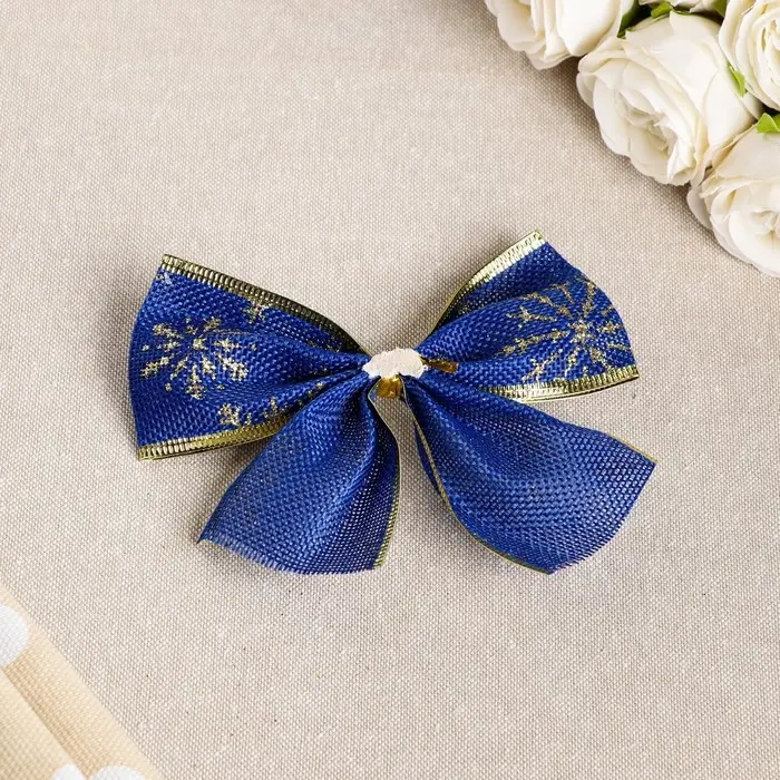 Бант праздничный «Снегопад», сине-золотой, 14 х 10 см