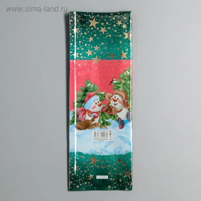 Новогодний подарочный пакет с ярким, красочным рисунком создаст праздничное настроение.