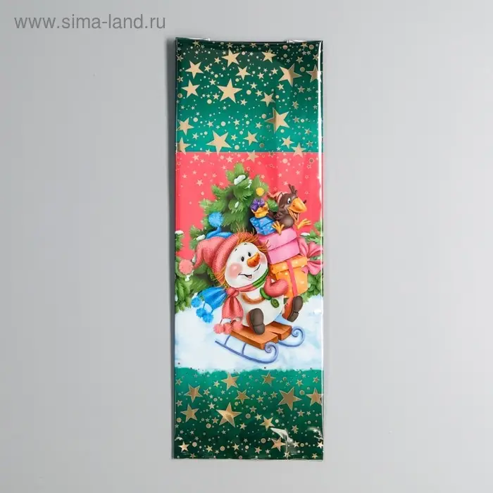 Пакет подарочный "На санках". 13,5 х 38 см.