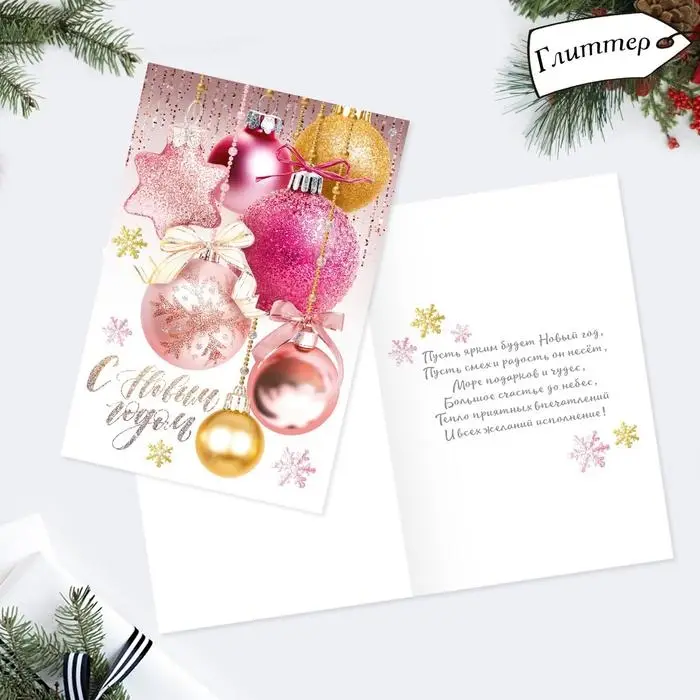 Открытка «С Новым годом!» глиттер, 12×18 см