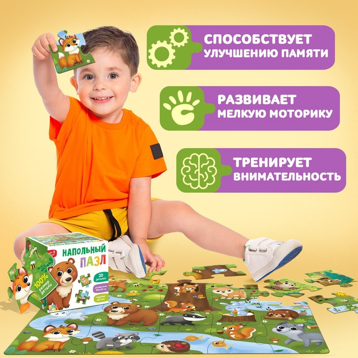 Занимаясь с напольными пазлами, ребёнок разовьёт моторику рук, логическое мышление, воображение, потренирует память.