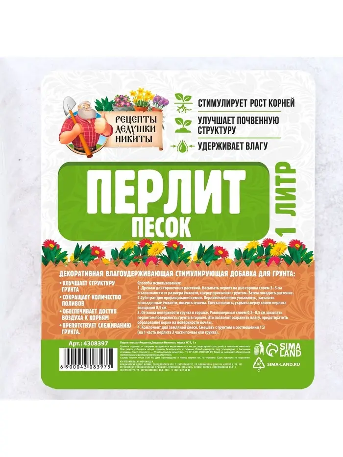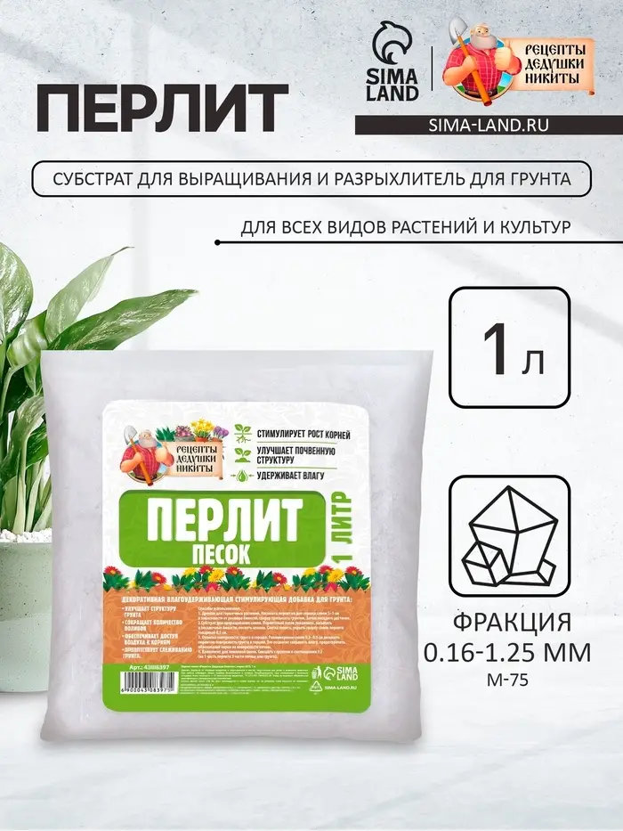 Перлит песок "Рецепты Дедушки Никиты" марка М75 1 л.