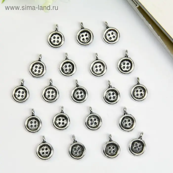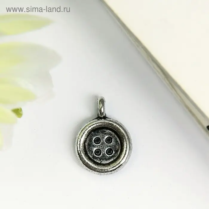Металлический элемент, декоративная подвеска «Арт Узор. Пуговка», серебро, 1.3×1.3 см
