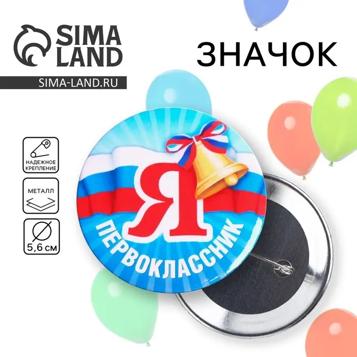 Значок закатной школьный на 1 сентября «Я первоклассник« 56 мм