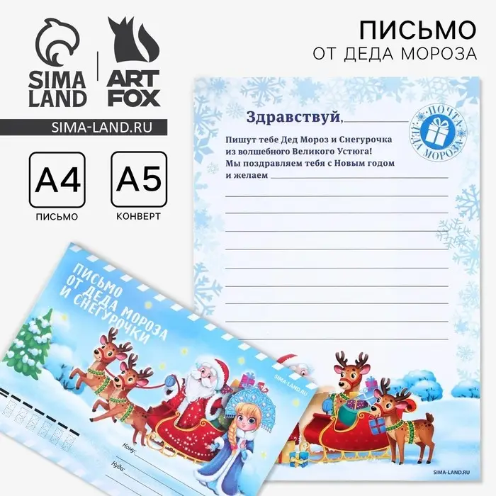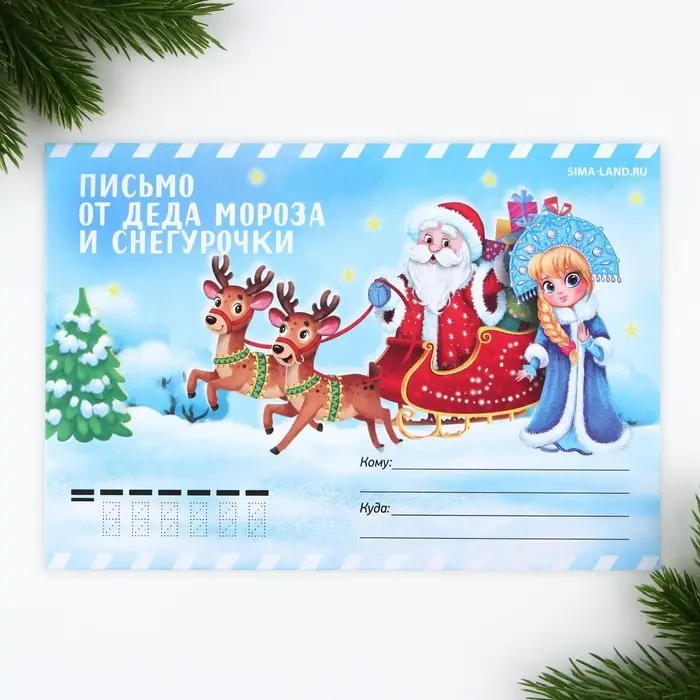 Письмо от деда мороза и Снегурочки, конверт А5 «Новый год: Зима»