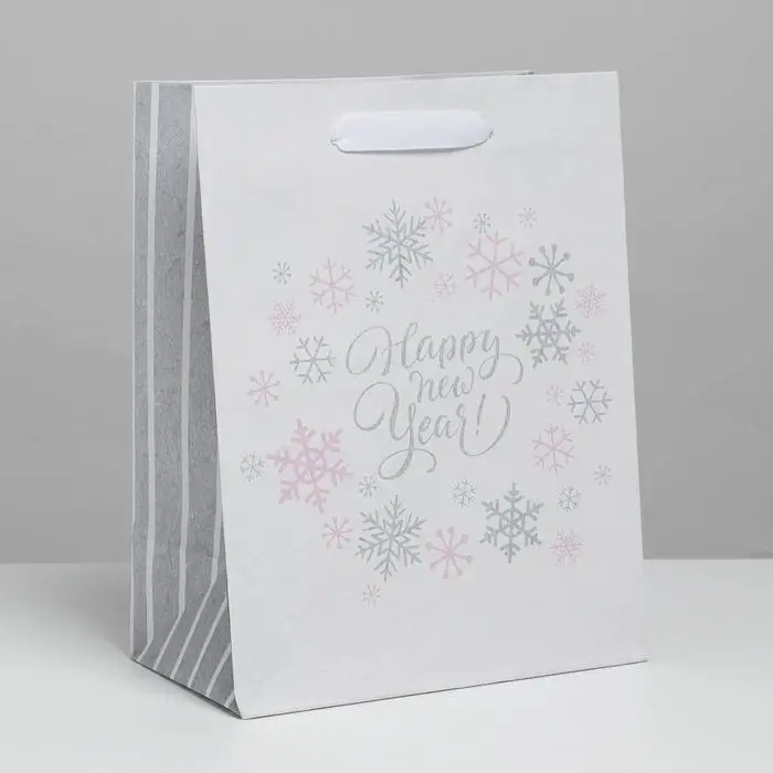 Пакет подарочный новогодний крафтовый «Happy new year!», 12 х 15 х 5.5 см