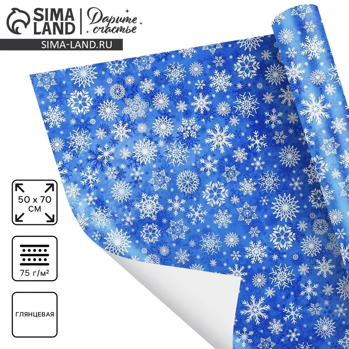 Упаковочная бумага на новый год «Снежный вальс», 50 х 70 см, глянцевая
